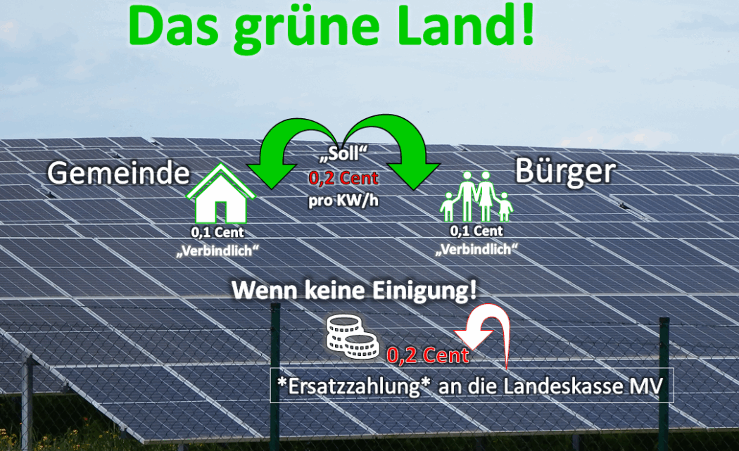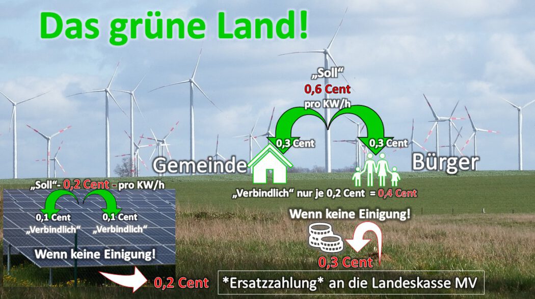 Die SPD- und Linke-geführte Landesregierung von MV hat einen neuen Entwurf des Bürger- und Gemeindebeteiligungsgesetzes (BüGembeteilG M-V) vorgelegt. Es soll die Menschen stärker am Ausbau von Wind- und Solarenergie beteiligen und gleichzeitig die Akzeptanz für neue Anlagen erhöhen. Auf dem Papier klingt das nach Fortschritt – doch wer genauer liest, erkennt schnell: Die Beteiligung bleibt kompliziert, unverbindlich und für die Bürger meist nur ein Versprechen.