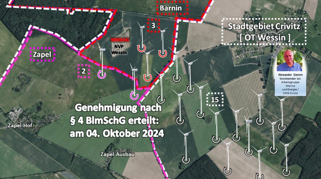 So erfuhr die Stadt Crivitz erst durch eine Veröffentlichung des Staatlichen Amtes für Landwirtschaft und Umwelt Westmecklenburg (StALU WM) am 10. Februar 2025, dass die Genehmigung für den Bau und Betrieb der 20 Windkraftanlagen bereits am 4. Oktober 2024 erteilt worden war. Die Bürgermeisterin zeigte sich entrüstet Ihren Bericht vom 17.03.2025: „Der Bauherr hatte uns Beteiligungsmöglichkeiten zugesagt. Danach wollte man nicht mehr mit uns reden.“