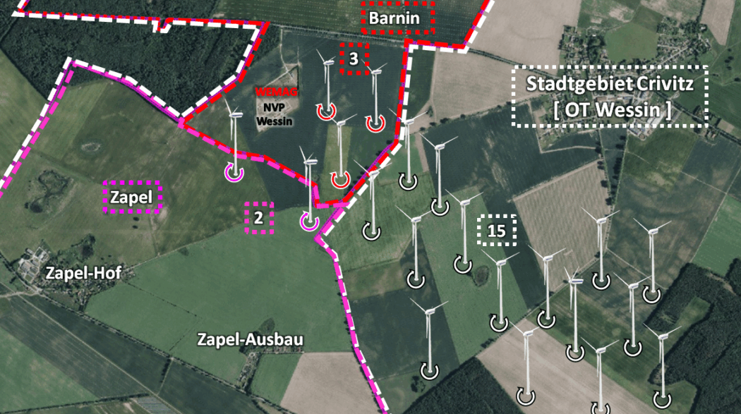 Bereits im Sommer 2024 zeichnete sich ab, dass die Stadt Crivitz mit ihrer Bürgermeisterin Britta Brusch-Gamm (CWG) nicht bereit war, die Pläne für das Windgebiet widerspruchslos hinzunehmen. In einer politischen Stellungnahme, gerichtet an den Regionalen Planungsverband sowie an Mitglieder des Kreistags und Landtags, formulierte sie eindringlich die Sorgen und Einwände der Stadt. Die Region rund um Barnin, Zapel und Wessin sei ökologisch sensibel, eine Vogelschutzzone der Stufe 3 – nicht die höchste Schutzklasse, aber dennoch ein wertvolles Nahrungshabitat für zahlreiche Arten. Der Investor hatte seine Bauunterlagen vorgelegt, doch die Stadt verweigerte das gemeindliche Einvernehmen. Es fehlten Unterlagen, Nachbesserungen blieben aus. Die Stadt reagierte mit einer Veränderungssperre, wollte eigene Untersuchungen anstoßen, eine alternative Planung entwickeln – ein letzter Versuch, Einfluss zu nehmen.
