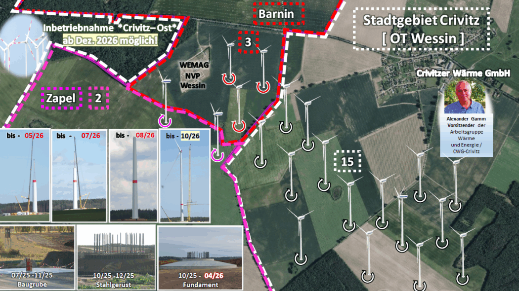 Hinzu kommt: Bereits rund 60 % der Fundamente für die 20 Windenergieanlagen sind fertiggestellt. Es wird also längst aktiv gebaut, während die Beteiligungsdebatte noch auf dem Papier geführt wird. Die Bürgermeisterin von Crivitz, Britta Brusch-Gamm, stellte am 17. März 2025 im Bericht zu wichtigen Angelegenheiten klar: „Bis zum heutigen Tag haben keine Gespräche mit dem Bauherrn stattgefunden.“ Damit ist deutlich: Verhandlungen sind nicht nur gescheitert, sie haben faktisch gar nicht stattgefunden.