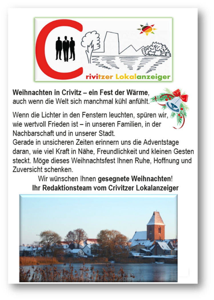 Es war eine dieser Dezembernächte, in denen Crivitz nicht zur Ruhe kam. Während in den Häusern Plätzchen dufteten und die Stadt im Lichterglanz der Adventszeit lag, spielte sich im Sitzungssaal der Stadtvertretung ein politisches Schauspiel ab, das viele Bürger noch lange beschäftigen sollte. Schon beim Betreten des Raumes spürte man, dass dieser Abend anders werden würde. Die Reihen waren ungewöhnlich voll, nicht nur mit Stadtvertretern, sondern auch mit Mitgliedern des CWG‑Vorstandes, die sich demonstrativ in die erste Zuschauerreihe gesetzt hatten. Es wirkte, als wolle die CWG – Crivitz an diesem Abend geschlossen Stärke demonstrieren – und Macht.