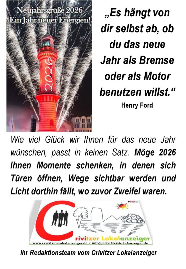 Das Fazit lautet daher: Crivitz braucht keine neuen Eindrücke, sondern endlich klare Entscheidungen. Haushaltsdisziplin, zeitnahe Abschlüsse und ehrliche Kommunikation sind unverzichtbar, wenn die Stadt ihre Zukunft sichern will. Ohne diesen Kurswechsel bleibt Crivitz im Rückwärtsgang – mit steigenden Gebühren, schrumpfenden Leistungen und verlorenen Chancen.